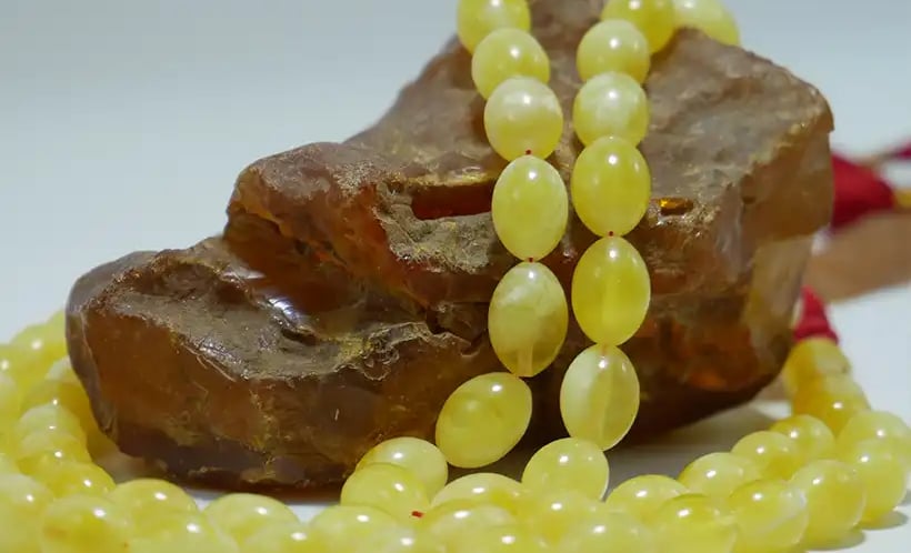 أحجار الكهرمان هي مواد طبيعية تُستخدم في صناعة المجوهرات.